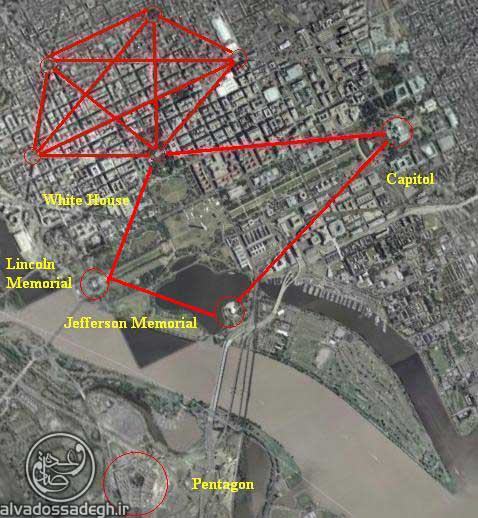 در شهرسازی ها و معماری های خود از آن برای خودنمایی استفاده میکنند،چراکه معتقدند ابلیس در سیاره زهره است و به همین جهت آبلیسکهای بلند و خیابانهای شهرهای خود را به شکل نمادهای خود در می آورند.در تصویر شهر واشنگتن دی سی و طرز قرار گرفتن کاخ سفید کنگره،بنای یادبود جفرسون و بنای یادبود لینکلن و خیابانهای مجاور را می بنید که شکل ستاره پنج پر و گونیا و پرگار را تشکیل می دهند.